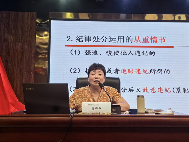 楊群紅教授對(duì)《中國(guó)共產(chǎn)黨紀(jì)律處分條例》進(jìn)行學(xué)習(xí)輔導(dǎo)