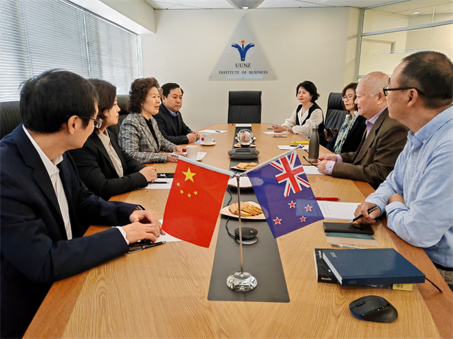 在UUNZ商學(xué)院,周保平一行與該校校長陳金明圍繞商科專業(yè)職教合作和海外培訓(xùn)基地建設(shè)進(jìn)行會談。雙方分別介紹了各自辦學(xué)情況以及在商科領(lǐng)域開展的合作,并著重就我國職業(yè)院校建設(shè)海外培黎實訓(xùn)基地進(jìn)行探討。周保平表示,“職教出海”是我國職業(yè)教育發(fā)展的重要方向,黃河水院已經(jīng)在海外大禹學(xué)院建設(shè)方面做出了富有成效的探索,希望雙方通過在新西蘭搭建職教合作平臺,進(jìn)一步提升我國高職院校的國際影響力。