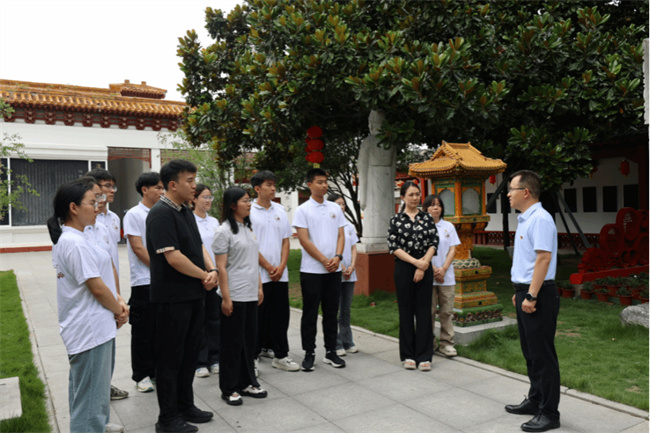 尚真書院黨委書記、執(zhí)行院長李志軒在醫(yī)圣祠給團(tuán)隊成員上黨課