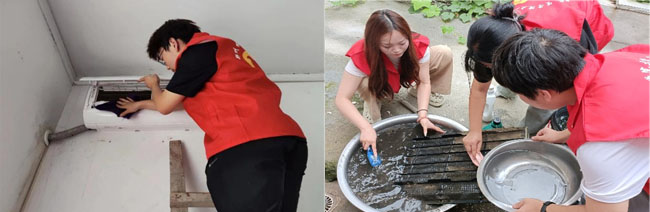 志愿者為村民清洗空調(diào)