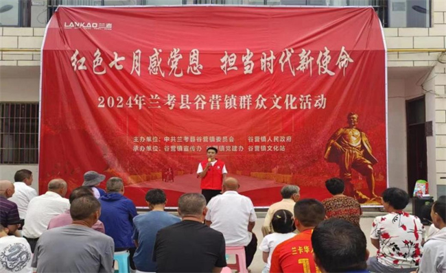 在熱情似火的紅色七月,實(shí)踐團(tuán)聯(lián)合谷營(yíng)鎮(zhèn)人民政府在凡集村開展文藝匯演及精準(zhǔn)關(guān)愛,實(shí)踐團(tuán)成員積極參與到演出前后的準(zhǔn)備工作,安全防范不放松主動(dòng)為現(xiàn)場(chǎng)村民分發(fā)反詐安全宣傳頁(yè)。匯演在退役大學(xué)生演唱的一首軍歌中拉開帷幕,軍歌嘹亮軍民情長(zhǎng),表演中他們或紅歌感恩新時(shí)代,或反詐情景形象演繹,或速寫勾勒鄉(xiāng)村振興圖。