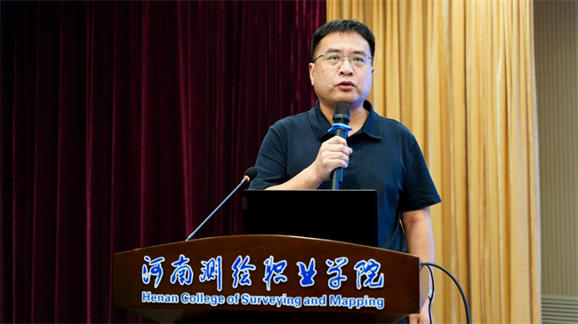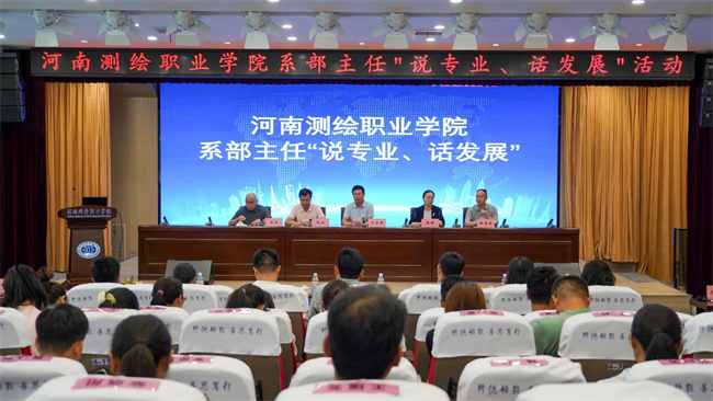 中新河南網(wǎng)8月29日電(陳賀 楊國(guó)政 鄭嶸淇 楊笑塵) 8月27日,河南測(cè)繪職業(yè)學(xué)院在多功能報(bào)告廳舉辦系部主任“說(shuō)專業(yè)、話發(fā)展”活動(dòng)。校黨委書(shū)記張樹(shù)嶺,校黨委副書(shū)記、校長(zhǎng)張凌杰,校黨委副書(shū)記、工會(huì)主席李駿元,校黨委委員、紀(jì)委書(shū)記郭書(shū)克出席活動(dòng);顒(dòng)邀請(qǐng)立訊集團(tuán)校企合作總負(fù)責(zé)人汪寶峰、黃河水利職業(yè)技術(shù)學(xué)院陳琳、北京數(shù)聯(lián)空間科技股份有限公司總經(jīng)理倪涵、河南新世紀(jì)拓普電子技術(shù)有限公司總經(jīng)理韓尊勝、河南財(cái)政金融學(xué)院藝術(shù)設(shè)計(jì)學(xué)院院長(zhǎng)郭浩五位專家進(jìn)行現(xiàn)場(chǎng)點(diǎn)評(píng)。150余名教師代表參與活動(dòng)。