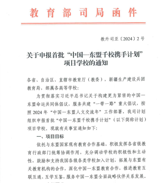 中新河南網(wǎng)9月10日電 根據(jù)教育部發(fā)布的《關(guān)于申報(bào)首批“中國—東盟千校攜手計(jì)劃”項(xiàng)目學(xué)校的通知》(教外司亞【2024】2號),鄭州職業(yè)技術(shù)學(xué)院成功入選教育部首批“中國—東盟千校攜手計(jì)劃”項(xiàng)目學(xué)校。