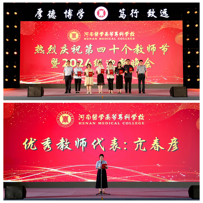 頒獎(jiǎng)環(huán)節(jié),校領(lǐng)導(dǎo)對(duì)2023-2024學(xué)年優(yōu)秀教師代表進(jìn)行表彰并頒發(fā)榮譽(yù)證書(shū)和獎(jiǎng)杯;A(chǔ)醫(yī)學(xué)部病理學(xué)教研室亢春彥老師代表優(yōu)秀教師發(fā)言,向全體教師表達(dá)衷心的祝福和感謝。