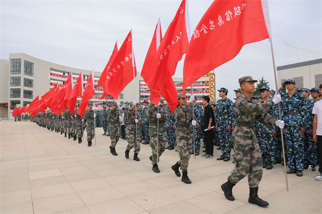 黨委書記孫振營為新生講授開學(xué)第一課,介紹了學(xué)校獨具匠心的人才培養(yǎng)模式和前瞻性的辦學(xué)理念,并對新生們寄予了深切的期望與要求,一是希望全體同學(xué)認(rèn)真對待,高度重視,全程參與,為大學(xué)生涯打下堅實基礎(chǔ)。二是嚴(yán)守各項紀(jì)律,扎扎實實訓(xùn)練,高質(zhì)量完成各項軍訓(xùn)任務(wù)。三是爭做軍訓(xùn)標(biāo)兵,積極融入團(tuán)隊,樹立榜樣意識與集體意識,激發(fā)使命感、榮譽感,練出凝聚力、向心力。