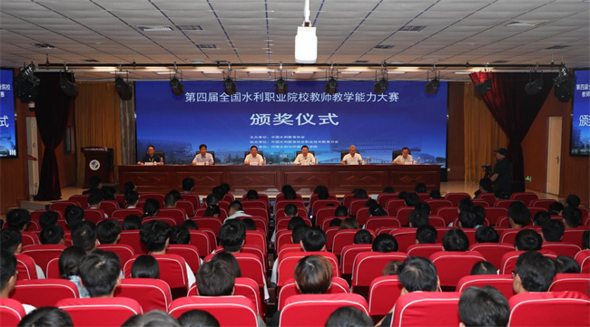 中國水利教育協(xié)會會長張明俊,中國水利教育協(xié)會副會長兼秘書長王韶華,中國水利教育協(xié)會副會長兼職教分會會長、黃河水利職業(yè)技術(shù)學(xué)院黨委副書記、校長胡昊,廣東水利電力職業(yè)技術(shù)學(xué)院副校長、專家評委組組長蔣伯杰,河南水利與環(huán)境職業(yè)學(xué)院黨委書記李廣慧,大賽評審專家和各參賽院校教師出席頒獎儀式。河南水利與環(huán)境職業(yè)學(xué)院副校長王玉振主持頒獎儀式。