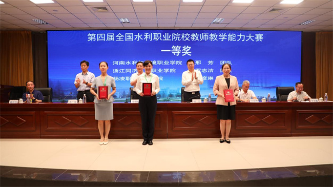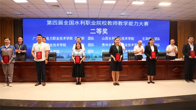 王韶華宣布了獲獎名單,大賽決出優(yōu)秀教學(xué)團隊一等獎3個、二等獎6個,優(yōu)秀組織單位獎5個。他指出,教師教學(xué)能力大賽是持續(xù)推進教育教學(xué)質(zhì)量提升的有效載體。大賽不僅是一場教學(xué)的競技,更是一次教育理念的交流,一次教學(xué)方法的創(chuàng)新,一次教育情懷的升華。希望各職業(yè)院校深入落實黨和國家關(guān)于新時代教師隊伍建設(shè)的決策部署,著力打造適應(yīng)水利專業(yè)高水平建設(shè)的高素質(zhì)“雙師型”教師隊伍,以賽促改,加大教育教學(xué)改革,扎實推進三教改革,為我國水利職業(yè)教育發(fā)展注入新的活力,為培養(yǎng)更多高素質(zhì)的水利人才貢獻力量。