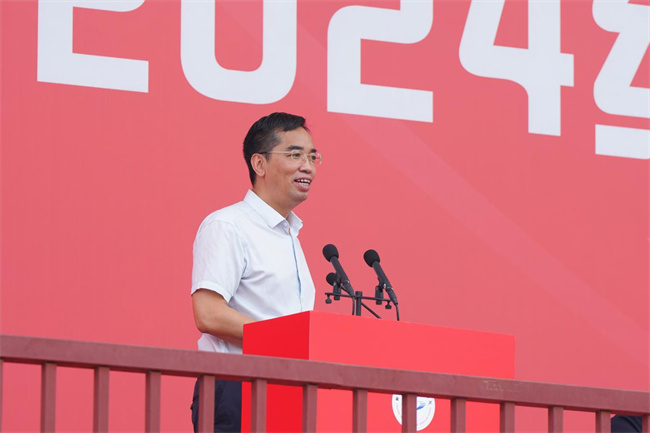 最后,校長(zhǎng)李曉東作開(kāi)學(xué)致辭。他代表學(xué)校向全體新同學(xué)表示熱烈歡迎和衷心的祝賀,同時(shí)以“正德明志,經(jīng)世致用”為題對(duì)鄭財(cái)院學(xué)子提出殷切希望:一是順勢(shì)而為,大有可為。希望同學(xué)們乘時(shí)代東風(fēng),努力在大有可為的新時(shí)代立大志、明大德,順勢(shì)而為、追光而行,譜寫青春華章;二是做好規(guī)劃,鎖定目標(biāo)。希望同學(xué)們以勤勉之為夯實(shí)青春底盤,盡早將學(xué)業(yè)規(guī)劃與職業(yè)規(guī)劃相結(jié)合、短期規(guī)劃與長(zhǎng)遠(yuǎn)規(guī)劃相結(jié)合,擔(dān)大任、成大才,努力寫好青春答卷。三是求知篤行,苦練技能。希望同學(xué)們將知識(shí)應(yīng)用于實(shí)際,成為有理想、有學(xué)識(shí)的匠師能人,用技能展現(xiàn)青春作為、彰顯青春風(fēng)采!澆花澆根,育人育心,李曉東表示,全校教職員工會(huì)牢記為黨育人、為國(guó)育才初心使命,以良好的師德師風(fēng)幫助學(xué)生筑夢(mèng)、追夢(mèng)、圓夢(mèng),讓每一位鄭財(cái)院學(xué)子在校園沃土的滋養(yǎng)中扎根追夢(mèng)、盡展才華!