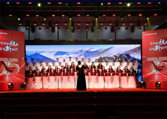 中新河南網(wǎng)10月1日電 贊歌獻祖國、奮進新時代。9月29日晚,鄭州職業(yè)技術(shù)學(xué)院在大學(xué)生活動中心舉辦慶祝中華人民共和國成立75周年教職工合唱比賽。學(xué)校黨委書記呂村、校長潘維成、黨委副書記肖世才、副校長張建偉、工會主席王桂麗、副校長王少華、紀(jì)委書記楊挺出席活動,與全校教職工歡聚一堂,共同謳歌新中國成立75年來的輝煌歷程,共同祝福偉大祖國繁榮昌盛。