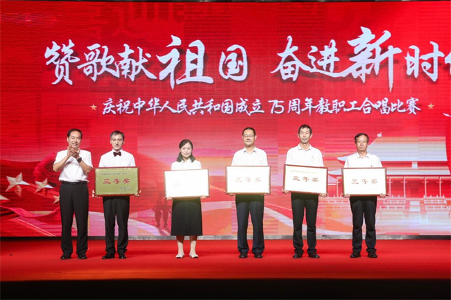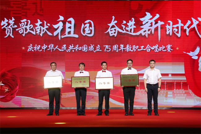 75年櫛風(fēng)沐雨,75年高歌奮進。整場比賽氣氛熱烈,高潮迭起,現(xiàn)場時時響起熱烈的掌聲。經(jīng)過激烈角逐,機關(guān)合唱一隊、文化創(chuàng)意學(xué)院和建筑與環(huán)境工程學(xué)院合唱隊榮獲一等獎;自動化與物聯(lián)網(wǎng)學(xué)院和信息工程與大數(shù)據(jù)學(xué)院合唱隊、軌道交通工程學(xué)院和生命健康學(xué)院合唱隊、新能源汽車學(xué)院合唱隊、財經(jīng)與金融管理學(xué)院和新材料工程學(xué)院合唱隊榮獲二等獎;機關(guān)合唱二隊和繼續(xù)教育學(xué)院合唱隊、馬克思主義學(xué)院合唱隊、智能制造學(xué)院合唱隊、電子商務(wù)學(xué)院合唱隊、體育學(xué)院合唱隊榮獲三等獎。黨委宣傳部、校工會榮獲優(yōu)秀組織獎,校團委、文化創(chuàng)意學(xué)院榮獲突出貢獻獎。