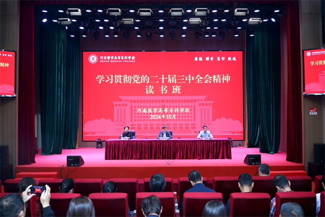 花明在開班講話中強調,要提高政治站位,深刻領會全會精神。充分把握全會的重大政治意義、理論意義、實踐意義,以全會精神統(tǒng)一思想、統(tǒng)一認識、統(tǒng)一行動,把學習貫徹黨的二十屆三中全會精神與與鞏固拓展主題教育成果和深化黨紀學習教育貫通起來。要加強學習研究,深化落實全會部署。結合全會對教育綜合改革的部署和要求,聯(lián)系學校實際,在加強黨建引領、落實立德樹人根本任務、打造融合發(fā)展的職業(yè)教育等方面,加強學習研究,深化理論闡釋。要增強履職本領,深入謀劃學校發(fā)展。要理論聯(lián)系實際,立足本職工作,與“新雙高”建設、學校“十四五”發(fā)展規(guī)劃、巡察整改等中心工作結合起來,持續(xù)做好優(yōu)化專業(yè)設置、改革培養(yǎng)模式、深化產(chǎn)教融合、加強交流合作等工作,把學習的成果轉化為具體的工作思路、工作舉措和工作成效,努力打造醫(yī)學高等職業(yè)教育特色和品牌。