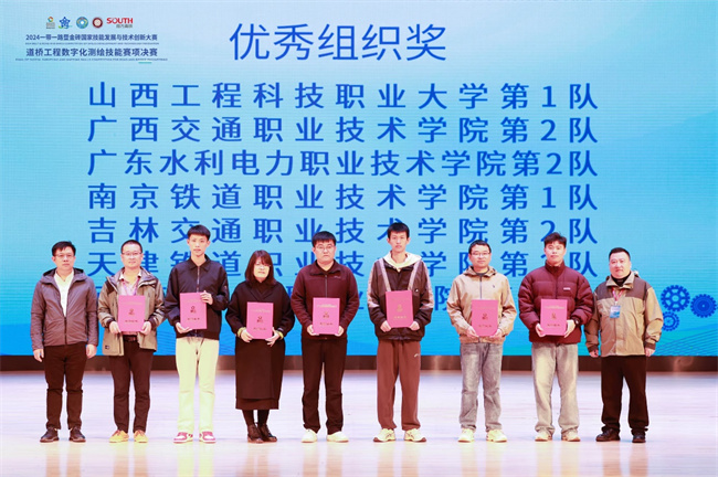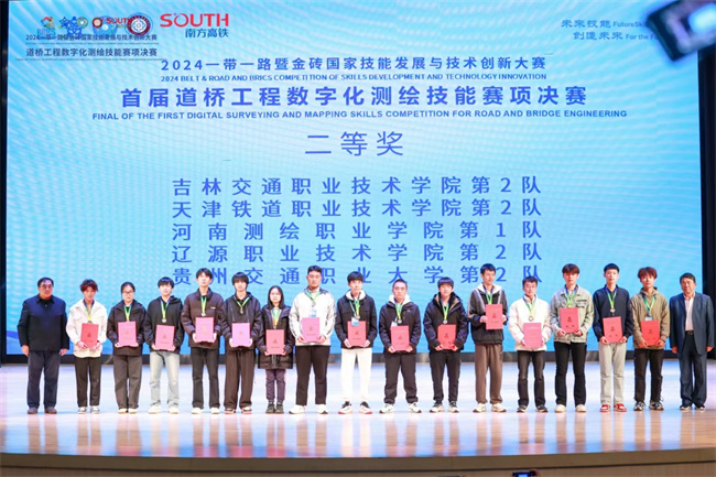 中新河南網(wǎng)10月26日電(楊磊) 10月17日-21日,2024“一帶一路”暨金磚國(guó)家技能發(fā)展與技術(shù)創(chuàng)新大賽——首屆道橋工程數(shù)字化測(cè)繪技能賽項(xiàng)決賽,在遼寧省交通高等?茖W(xué)校隆重舉行。此次競(jìng)賽吸引了來(lái)自全國(guó)40多所院校70多支代表隊(duì)參加,河南測(cè)繪職業(yè)學(xué)院參賽隊(duì)由測(cè)繪工程系書記賴學(xué)軍擔(dān)任領(lǐng)隊(duì),張浩哲、李名語(yǔ)、李圣卉、楊磊四位老師指導(dǎo)的兩支代表隊(duì)參賽,經(jīng)過(guò)為期兩天的激烈爭(zhēng)奪,最終榮獲二等獎(jiǎng)1項(xiàng)、三等獎(jiǎng)1項(xiàng),張浩哲、李名語(yǔ)榮獲優(yōu)秀指導(dǎo)老師,學(xué)校榮獲優(yōu)秀組織獎(jiǎng)。