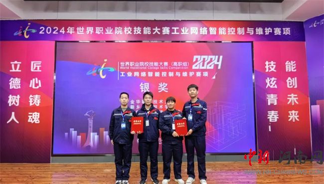 由智能制造學院尹靜文、鄭小慧教練團隊指導(dǎo)的竇偉堂、郭鵬、原嘉偉、劉法照團隊獲工業(yè)網(wǎng)絡(luò)智能控制與維護組賽項銀獎。
