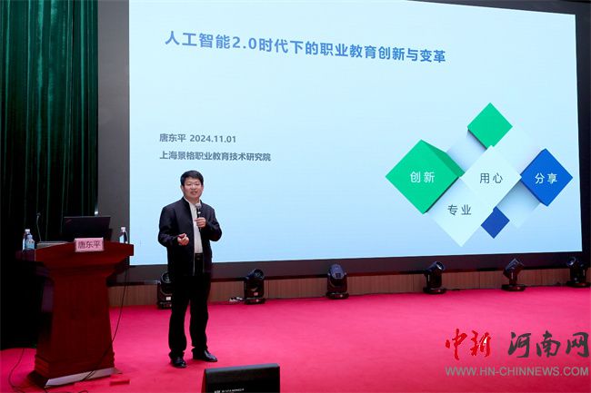 講座圍繞“從工業(yè)革命視角看新一代人工智能技術(shù)”“AI時(shí)代每個(gè)超級(jí)個(gè)體都有一個(gè)智能團(tuán)隊(duì)”“AIGC為專業(yè)領(lǐng)域帶來(lái)的機(jī)遇與挑戰(zhàn)”“數(shù)字員工的出現(xiàn)賦予職業(yè)技能教育的新使命”“第四次工業(yè)革命浪潮對(duì)職業(yè)教育的影響”等五個(gè)方面展開(kāi)。唐東平在人工智能時(shí)代及第四次工業(yè)革命的背景下,對(duì)職業(yè)教育技術(shù)的創(chuàng)新與變革進(jìn)行了深入講解,介紹了相關(guān)信息化教學(xué)技術(shù)和方法,展示了職業(yè)教育在人工智能浪潮中的無(wú)限可能;通過(guò)具體案例展示了AI 2.0時(shí)代人工智能技術(shù)在創(chuàng)意、教育、醫(yī)療健康等領(lǐng)域的實(shí)際應(yīng)用,強(qiáng)調(diào)了這一技術(shù)在提升工作效率與創(chuàng)新能力方面的潛力;分享了人工智能在教材編寫和教育教學(xué)過(guò)程中的問(wèn)題及解決方案,并提出通過(guò)人工智能輔助教學(xué),提高教學(xué)效率和學(xué)習(xí)效果的新模式。