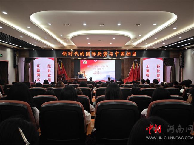 中新河南網(wǎng)11月14日電(寧爰懿) 11月13日,鄭州財稅金融職業(yè)學(xué)院副院長施長春以《新時代的國際局勢與中國擔(dān)當(dāng)》為題在思政報告廳為信息技術(shù)系學(xué)生上了一堂生動的思政課。