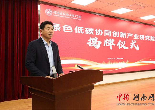 顧曉山在致辭中向綠色低碳協(xié)同創(chuàng)新產(chǎn)業(yè)研究院的成立揭牌表示熱烈祝賀。他指出,此次中機六院攜手河南建院合作共建綠色低碳協(xié)同創(chuàng)新產(chǎn)業(yè)研究院,是響應(yīng)現(xiàn)代職業(yè)教育改革、順應(yīng)地方產(chǎn)業(yè)發(fā)展所需的一次重要探索,將積極推動政、產(chǎn)、教、研深度融合,服務(wù)城鄉(xiāng)建設(shè)綠色低碳發(fā)展需求。希望以此次成立揭牌為新的起點,充分發(fā)揮各自專業(yè)優(yōu)勢,全力推進協(xié)同創(chuàng)新產(chǎn)業(yè)研究院建設(shè),精準對接服務(wù)地方產(chǎn)業(yè)發(fā)展需求,推動產(chǎn)教合作不斷結(jié)出新碩果。
