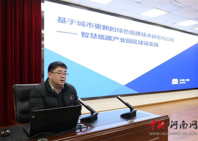 揭牌儀式后,中機六院綠色低碳發(fā)展研究所所長王明磊以《基于城市更新的綠色低碳技術(shù)研究與應(yīng)用——智慧低碳產(chǎn)業(yè)園區(qū)建設(shè)實踐》為主題,圍繞城市更新的綠色低碳技術(shù)研究與應(yīng)用等方面內(nèi)容作了一場精彩的講座。