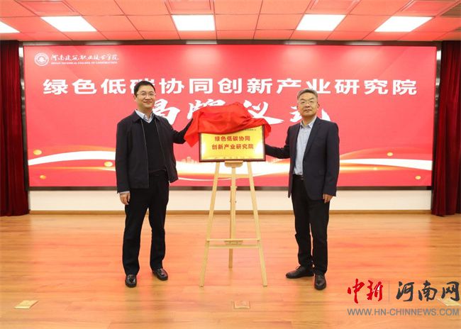 校長焦?jié)c中機六院黨委委員、副總經(jīng)理張運森共同為綠色低碳協(xié)同創(chuàng)新產(chǎn)業(yè)研究院揭牌。