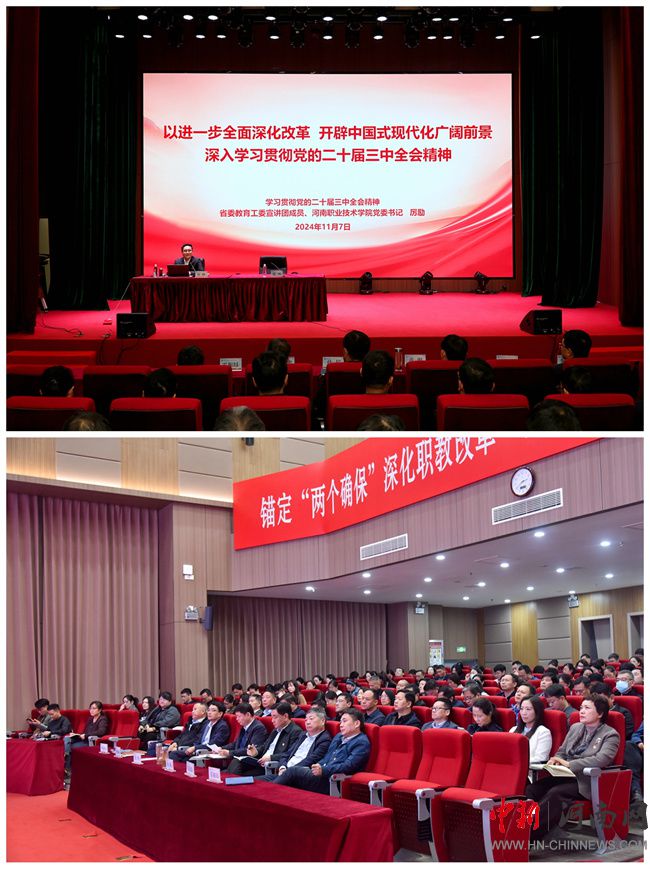 理論宣講,學(xué)深悟透擔(dān)使命。聚焦深入學(xué)習(xí)貫徹黨的二十屆三中全會精神,邀請學(xué)習(xí)貫徹黨的二十屆三中全會精神省委教育工委宣講團成員、河南職業(yè)技術(shù)學(xué)院黨委書記厲勵作專題講座。厲勵圍繞黨的二十屆三中全會精神和全國教育大會精神,從多個維度進行了全面、深入的解讀,為大家提供了寶貴的理論指導(dǎo)和思想引領(lǐng),引導(dǎo)黨務(wù)干部進一步把準(zhǔn)政治方向、理清工作思路、明確工作重點、增強履職能力。