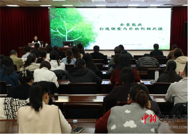 全景思政——打造課堂內外同頻共振。河南農業(yè)大學文法學院黨委副書記、全國高校輔導員年度人物提名獎獲得者朱瑞萍老師立足自身學生工作實際,結合輔導員工作成長發(fā)展,融入省賽國賽參與經驗,從“全景視角——思政工作的時代訴求”“全面發(fā)展——青年學生的成長需求”“三全育人——高校思政的實踐探索”三個方面進行了全面闡釋,并寄語學校輔導員努力做學生成長成材的人生導師和健康生活的知心朋友,鼓勵輔導員從理論學習到工作實踐,讓“知心朋友”多些引領力;從日常管理到價值引領,讓“傳道師者”更具吸引力;從傾聽陪伴到成長筑基,讓“信仰之花”延續(xù)生命力。