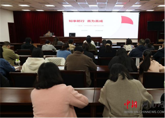 凝聚共識——做有溫度的輔導員,共筑育人新陣地。學生工作部部長賈艷以《知事躬行,善為善成——“一站式”學生社區(qū)之輔導員工作》為題,介紹了“一站式”學生社區(qū)建設背景、主要任務,結合學校“一站式”學生社區(qū)建設情況從輔導員職責、具體工作、有關要求等方面詳細闡述,希望全體學工人員在學校“一站式”學生社區(qū)建設工作中做到認識到位、責任到位、工作到位,履行好值班值守、開展好學生活動、解決好學生急難愁盼問題、處理好可能出現(xiàn)的突發(fā)事件。