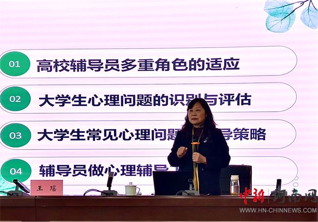 講座中,王瑤教授圍繞“高校輔導(dǎo)員多重角色的適應(yīng)、大學(xué)生心理問(wèn)題識(shí)別與評(píng)估、大學(xué)生常見心理問(wèn)題及輔導(dǎo)策略、輔導(dǎo)員做心理輔導(dǎo)工作的要點(diǎn)”四個(gè)方面進(jìn)行了深入淺出的講解,不僅分享了豐富的理論知識(shí),也結(jié)合具體案例提供了實(shí)用性強(qiáng)的操作建議。