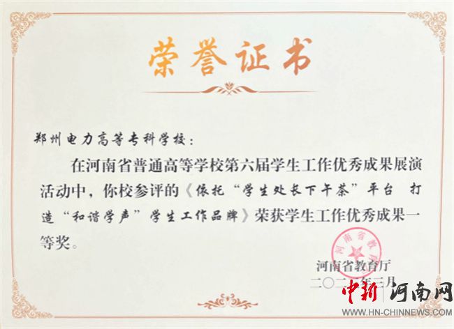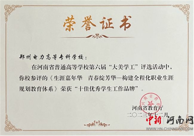 星光不問趕路人,時(shí)光不負(fù)實(shí)干者。近年來,鄭州電力高等?茖W(xué)校把握類型定位,深耕電力職教,強(qiáng)化思想引領(lǐng),堅(jiān)持五育并舉,優(yōu)化管理服務(wù),推動(dòng)內(nèi)涵建設(shè),助力學(xué)生高質(zhì)量成長(zhǎng)成才,學(xué)生工作成績(jī)斐然。先后獲評(píng)“大美學(xué)工”十佳優(yōu)秀學(xué)生工作先進(jìn)單位、十佳優(yōu)秀學(xué)生工作品牌3項(xiàng)、學(xué)生工作優(yōu)秀成果獎(jiǎng)3項(xiàng)、首屆全國(guó)大學(xué)生職業(yè)生涯規(guī)劃大賽優(yōu)秀組織獎(jiǎng)等榮譽(yù),學(xué)生在創(chuàng)新創(chuàng)業(yè)、生涯規(guī)劃等大賽中屢創(chuàng)佳績(jī),畢業(yè)生初次就業(yè)去向落實(shí)率連續(xù)四年位居全省前列。