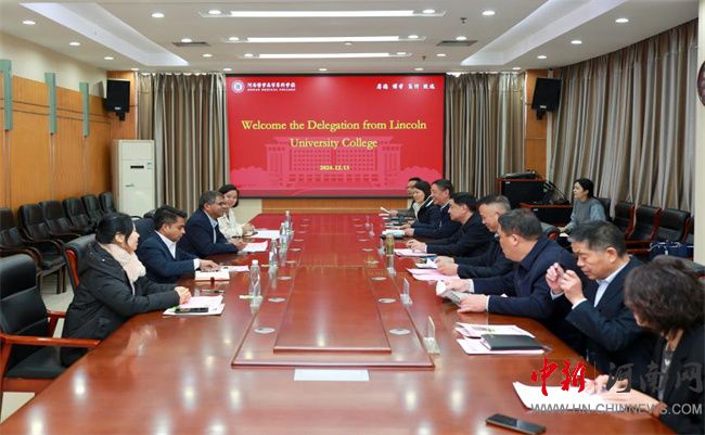 中新河南網(wǎng)12月17日電(文/樊鑫鈺 圖/蔡雨) 12月13日,馬來(lái)西亞林肯大學(xué)學(xué)院校長(zhǎng)阿米亞一行應(yīng)邀訪問(wèn)河南醫(yī)學(xué)高等專(zhuān)科學(xué)校(以下簡(jiǎn)稱(chēng)該校),雙方就藥學(xué)專(zhuān)業(yè)合作辦學(xué)事宜進(jìn)行了深入交流。會(huì)議在圖文信息中心八樓第一會(huì)議室舉行。校長(zhǎng)孫韜出席會(huì)議并講話(huà),副校長(zhǎng)李建豐主持會(huì)議。
