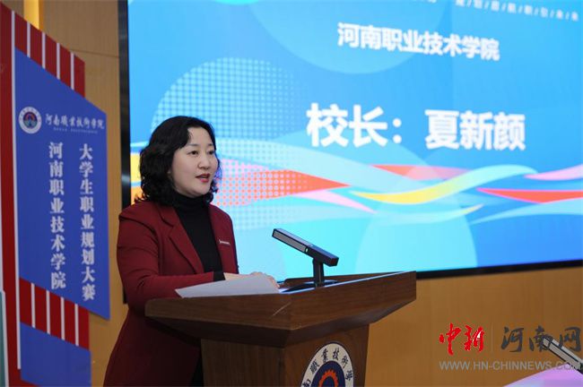 中新河南網12月21日電(王林) 12月19日下午,河南職業(yè)技術學院第八屆職業(yè)規(guī)劃大賽決賽在學校239學術報告廳舉行。校黨委副書記、校長夏新顏為大賽致辭。校黨委委員、副校長魯冬,各學院黨總支書記、就業(yè)專干、指導教師、學生代表近200人共同觀摩大賽。