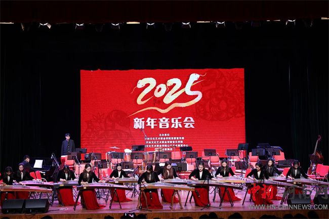 音樂(lè)會(huì)以民樂(lè)為主,共演繹了12首不同風(fēng)格的曲目,這些曲目中,既有經(jīng)典的傳統(tǒng)曲目,又有現(xiàn)代的創(chuàng)新之作。每一段旋律都承載著豐富的文化內(nèi)涵和情感表達(dá),彰顯了民族音樂(lè)的獨(dú)特魅力,體現(xiàn)了民族精神和文化自信!侗本┫灿崱贰都t色娘子軍組曲》以管弦樂(lè)宏大的氣勢(shì)和豐富的音樂(lè)表現(xiàn)力,展現(xiàn)出特定時(shí)代的風(fēng)貌;歌曲《青玉案》憑借獨(dú)特的韻味和優(yōu)美的旋律,為觀眾帶來(lái)別樣的聽(tīng)覺(jué)享受;合奏《我的祖國(guó)》帶領(lǐng)人們領(lǐng)略祖國(guó)壯麗山河;笛子獨(dú)奏《牧民新歌》用靈動(dòng)的音符描繪出草原的遼闊與牧民的生活場(chǎng)景;京劇江姐選段《春蠶》讓傳統(tǒng)戲曲的魅力得以展現(xiàn);二胡協(xié)奏曲《風(fēng)波亭》則將民族樂(lè)器獨(dú)特的魅力發(fā)揮得淋漓盡致;合奏電視劇《大宅門》主題曲 —— 蘆溝曉月,具有獨(dú)特韻味;獨(dú)唱《沁園春·雪》以大氣磅礴的風(fēng)格展現(xiàn)出偉人的豪邁情懷!蹲鎳(guó)紅花遍地開(kāi)》更是以歡快的節(jié)奏讓現(xiàn)場(chǎng)觀眾掌聲不斷。其中,開(kāi)封文化藝術(shù)職業(yè)學(xué)院音樂(lè)學(xué)院民族室內(nèi)樂(lè)團(tuán)和古箏樂(lè)團(tuán)帶來(lái)的極具新春氣質(zhì)的《金蛇狂舞》《映山紅主題隨想曲》,迅速將觀眾帶入到歡快熱烈的氣氛中。激昂的鑼鼓、歡快的弦樂(lè)交織在一起,讓觀眾觀賞了音色豐富、音域?qū)拸V、表現(xiàn)力強(qiáng)、具有民族特色樂(lè)器演奏的樂(lè)曲,充分展示了開(kāi)封文化藝術(shù)職業(yè)學(xué)院民族樂(lè)團(tuán)的專業(yè)素養(yǎng)和實(shí)力。