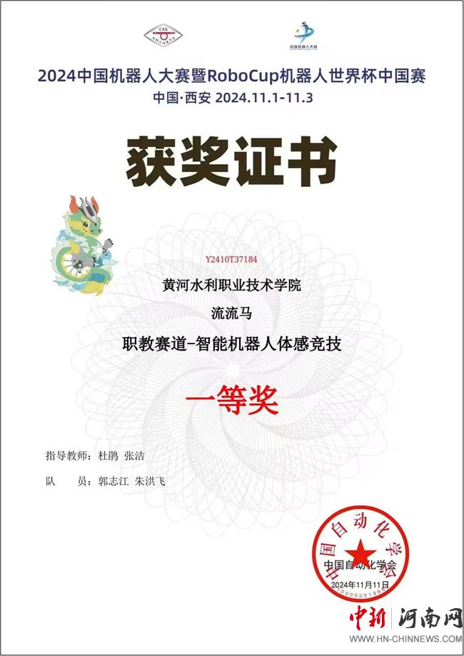 黃河水利職業(yè)技術(shù)學院摘得2024中國機器人大賽智能機器人體感競技國賽一等獎1項