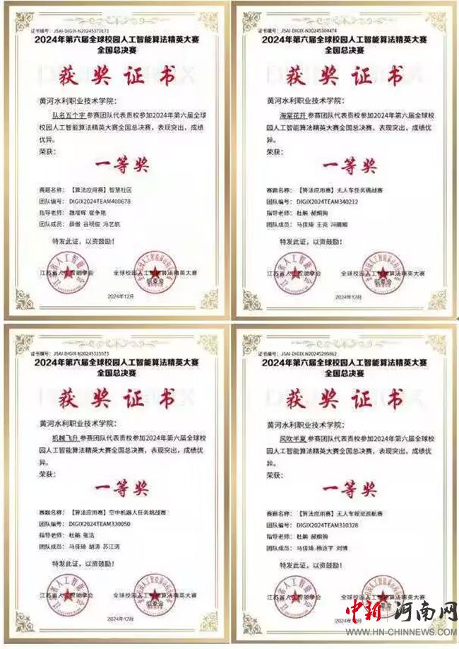黃河水利職業(yè)技術(shù)學院摘得2024全球校園人工智能算法精英大賽全國總決賽一等獎4項