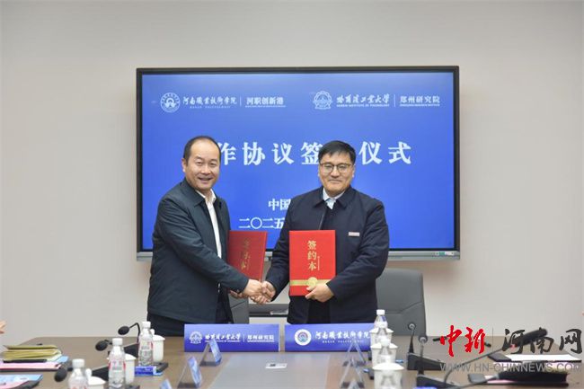 儀式上,夏新顏、劉銘輝分別代表雙方簽署戰(zhàn)略合作協(xié)議,任楓軒、鄂羽佳分別代表學(xué)校河職創(chuàng)新港和哈工大鄭州研究院河南哈鄭同心孵化器有限公司簽署入駐協(xié)議。