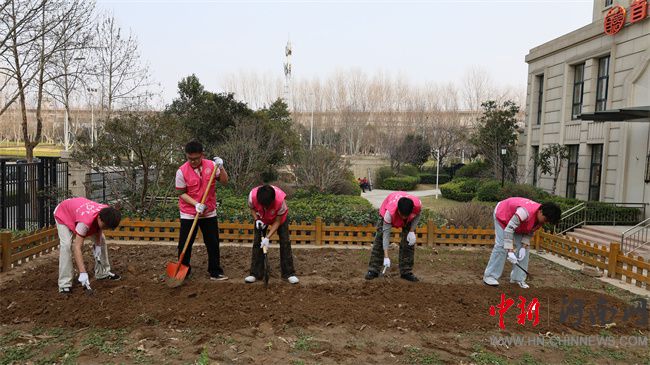 活動(dòng)當(dāng)日,“豫行紅途”黨史實(shí)踐宣講團(tuán)的成員們帶著高漲的熱情和齊全的勞動(dòng)工具,準(zhǔn)時(shí)抵達(dá)鄭州首慈有愛(ài)養(yǎng)老服務(wù)中心。在老師的精心指導(dǎo)下,大家迅速分組,一場(chǎng)別開(kāi)生面的開(kāi)荒種植活動(dòng)就此拉開(kāi)帷幕。活動(dòng)現(xiàn)場(chǎng)氣氛熱烈,師生們配合無(wú)間,干勁沖天,每個(gè)人都全身心投入其中,呈現(xiàn)出一派熱火朝天的繁忙景象。