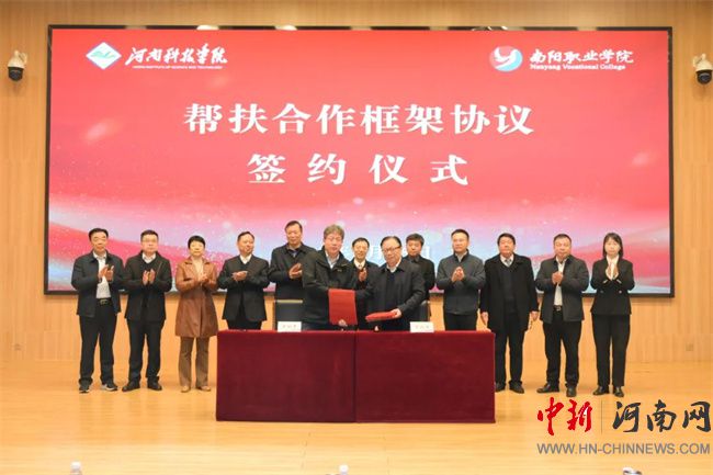 中新河南網(wǎng)3月17日電 3月15日上午,南陽(yáng)職業(yè)學(xué)院圖書(shū)館西報(bào)告廳內(nèi)氣氛熱烈,河南科技學(xué)院與南陽(yáng)職業(yè)學(xué)院對(duì)口幫扶合作框架協(xié)議簽約暨南水北調(diào)中線工程水源地鄉(xiāng)村振興學(xué)院、協(xié)同創(chuàng)新中心揭牌儀式在此隆重舉行。河南科技學(xué)院校長(zhǎng)闞云超、副校長(zhǎng)樂(lè)玉忠及相關(guān)單位負(fù)責(zé)人,西峽縣人民政府副縣長(zhǎng)崔淅州,南陽(yáng)職業(yè)學(xué)院全體在校領(lǐng)導(dǎo)出席儀式。此次儀式由南陽(yáng)職業(yè)學(xué)院黨委副書(shū)記、工會(huì)主席郭書(shū)賢主持,該校全體中層干部共同見(jiàn)證這一重要時(shí)刻。