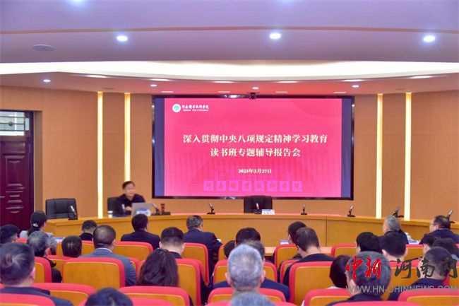 中新河南網(wǎng)3月30日電(隋納新) 按照校黨委關(guān)于開(kāi)展深入貫徹中央八項(xiàng)規(guī)定精神學(xué)習(xí)教育工作安排,3月27日至28日,河南職業(yè)技術(shù)學(xué)院采取集中學(xué)習(xí)、個(gè)人自學(xué)和交流研討相結(jié)合的形式,舉辦為期兩天的深入貫徹中央八項(xiàng)規(guī)定精神學(xué)習(xí)教育讀書(shū)班。校黨委書(shū)記厲勵(lì)作開(kāi)班講話。校黨委副書(shū)記、校長(zhǎng)夏新顏主持開(kāi)班儀式。全體校領(lǐng)導(dǎo)及各單位黨政負(fù)責(zé)同志參加讀書(shū)班。
