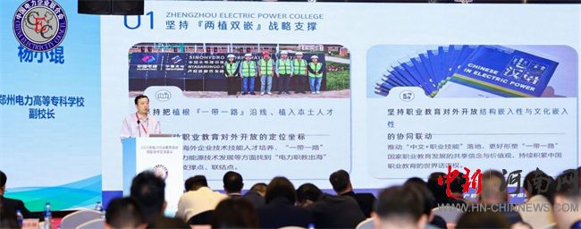 鄭州電力高等?茖W(xué)校受邀參加此次大會,副校長楊小琨以“電力職教產(chǎn)教協(xié)同出海,中國匠心點(diǎn)亮全球未來”為主題,分享了學(xué)校在職業(yè)教育國際化進(jìn)程中的創(chuàng)新實(shí)踐與豐碩成果,贏得與會代表的熱烈反響。
