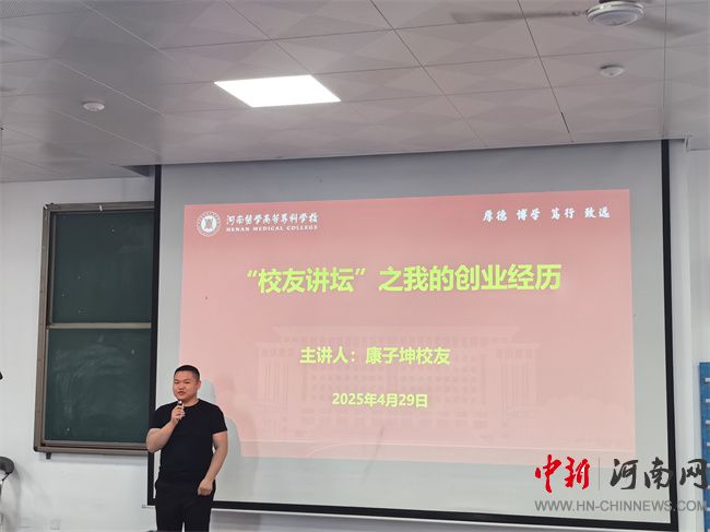 中新河南網(wǎng)5月5日電(文·圖/王輝) 4月29日,河南醫(yī)學高等?茖W校第一期“校友講壇”活動成功舉辦,2020屆護理專業(yè)校友、河南省一專健康管理集團董事長、河南產(chǎn)學研母嬰研究院院長康子坤作《從醫(yī)專人到創(chuàng)業(yè)人的蛻變-創(chuàng)業(yè)經(jīng)歷分享》主題講座。學校大學生就業(yè)創(chuàng)業(yè)指導中心、公共基礎(chǔ)部有關(guān)人員和學生代表100余人參加。