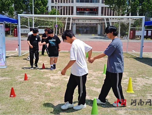 活動(dòng)當(dāng)天,從中午12:00至下午16:00,在校園田徑場(chǎng)上設(shè)置的游戲區(qū)域迎來(lái)了超過(guò)1000人次的熱情參與。同學(xué)們?cè)趨⑴c各個(gè)趣味游戲中盡情享受團(tuán)隊(duì)協(xié)作的樂(lè)趣,在互動(dòng)中深化了對(duì)自我和他人的理解。“你是我的眼”活動(dòng)鼓勵(lì)同學(xué)們蒙上眼睛,完全依賴同伴的引導(dǎo)穿越障礙,體驗(yàn)到了人與人之間的真誠(chéng)與信賴;“跳長(zhǎng)繩”、“心有千千結(jié)” 、“南水北調(diào)”、“珠行千里”、“不倒森林”等合作游戲鼓勵(lì)同學(xué)們與團(tuán)隊(duì)一同尋找解決問(wèn)題的策略,鍛煉協(xié)作能力;而“投壺”、“袋鼠跳”活動(dòng),也讓同學(xué)們?cè)诟?jìng)爭(zhēng)中獲得自信。每一個(gè)活動(dòng)都成為心靈探索的入口,同學(xué)們沉浸式體驗(yàn)表達(dá)自我、探索自我,釋放情感的同時(shí)也感受到了來(lái)自同伴的支持與溫暖。