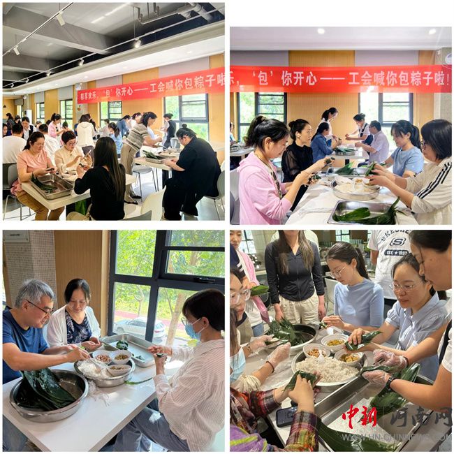 校工會(huì)開展“粽享歡樂 包你開心”端午節(jié)包粽子活動(dòng)。餐廳內(nèi)早早準(zhǔn)備好了糯米、花生、葡萄干、蜜棗、粽葉、棉線等包粽子的材料。活動(dòng)伊始,經(jīng)驗(yàn)豐富的教職工主動(dòng)為大家示范包粽子的技巧。大家圍坐在一起,一邊包粽子,一邊交流工作與生活中的趣事,氣氛溫馨融洽。整個(gè)食堂彌漫著粽葉的清香與糯米的香甜。經(jīng)過近兩個(gè)小時(shí)的努力,桌上堆滿了形態(tài)各異卻飽含心意的粽子;顒(dòng)不僅讓教職工們體驗(yàn)了傳統(tǒng)民俗文化的樂趣,增進(jìn)了彼此之間的感情,更展現(xiàn)了工會(huì)對(duì)教職工的關(guān)懷。