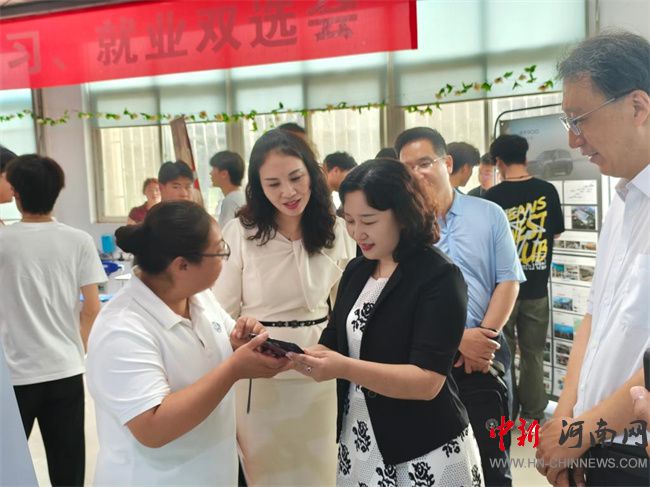 中新河南網(wǎng)6月9日電(郭睿) 6月7日上午,河南職業(yè)技術(shù)學(xué)院汽車與交通學(xué)院舉辦2025年實(shí)習(xí)就業(yè)雙選會(huì)暨訪企拓崗系列活動(dòng)。鄭州宇通集團(tuán)有限公司、奇瑞新能源汽車股份有限公司、兔師傅汽車維修有限公司、河南威佳汽車貿(mào)易集團(tuán)等20家行業(yè)龍頭企業(yè)齊聚校園,為學(xué)生搭建優(yōu)質(zhì)實(shí)習(xí)就業(yè)平臺(tái)。校黨委副書記、校長(zhǎng)夏新顏現(xiàn)場(chǎng)參觀指導(dǎo),與招聘企業(yè)和應(yīng)聘學(xué)生進(jìn)行親切交談,并參加訪企拓崗座談會(huì)。