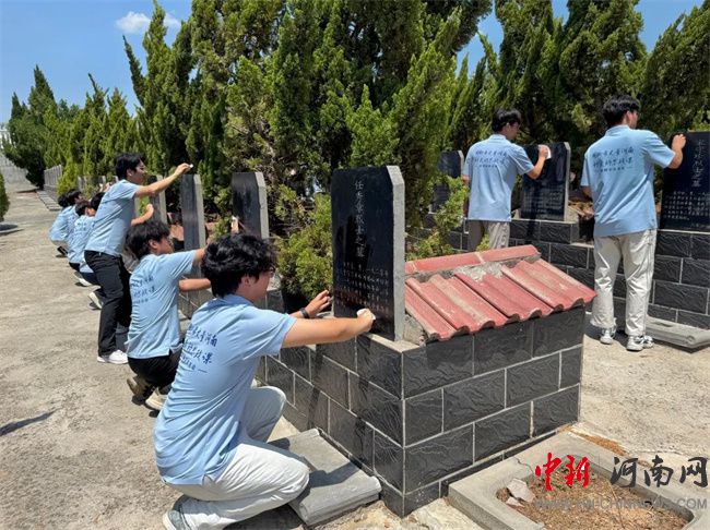 在輝縣市烈士陵園,實(shí)踐團(tuán)成員手持抹布擦拭墓碑,在莊嚴(yán)肅穆的紀(jì)念碑前駐足瞻仰,追溯先烈足跡,以實(shí)際行動表達(dá)對革命先輩的無限敬仰與深切追念,讓紅色基因在青年大學(xué)生心中深深扎根。“我們今天的幸福生活,正是無數(shù)這樣的英雄用生命換來的。”河職師生用腳步丈量紅色土地,用心靈感悟著先輩的精神密碼,每一次擦拭都是無聲的對話,每一次凝視都是跨越時空的致敬。