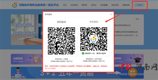 河南省中等職業(yè)教育統(tǒng)一招生平臺學生報名流程
