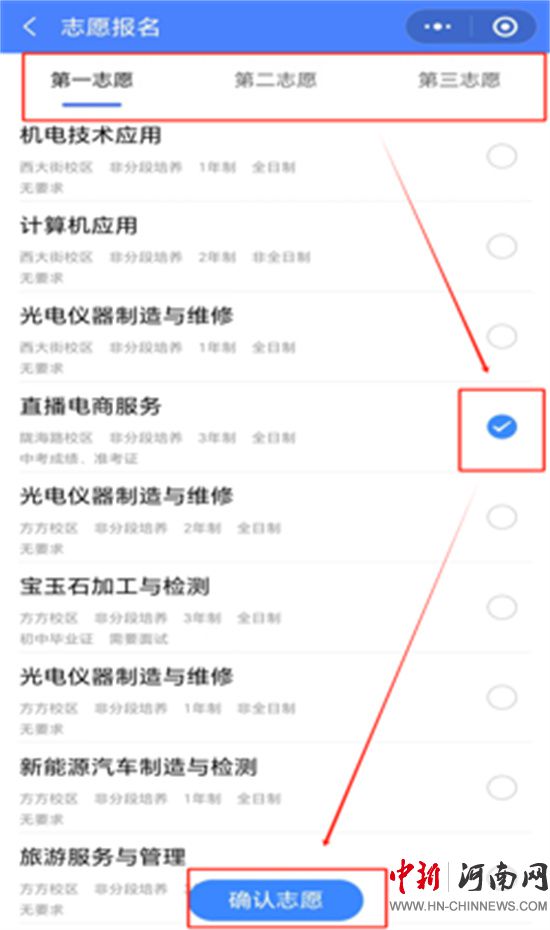 選擇意向學校、專業(yè),填報志愿,首次報名需要進行人臉識別;