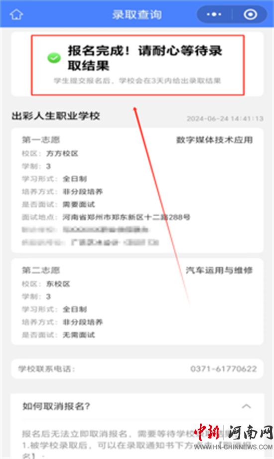林州建筑職業(yè)技術學院三年制中專(477)學生報名流程