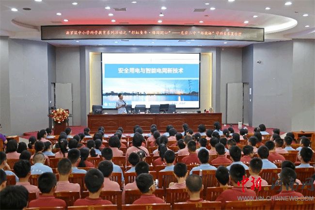 鄭州電力高等?茖W(xué)校電力科普團(tuán)師生走進(jìn)福建龍巖二中電力科普課堂,帶來一場別開生面的講座。從風(fēng)機(jī)模型到‘電流按摩’;從亮晶晶的銅、鐵、鋁片到五顏六色的電阻和電池,無不激發(fā)起營員們對電力知識的好奇。而當(dāng)大屏里出現(xiàn)綿延的光伏電站像藍(lán)色海洋般鋪滿山坡,巨大的風(fēng)力發(fā)電機(jī)葉片在云端轉(zhuǎn)動,橫跨海底的電纜像隧道連接起兩岸時,營員們充滿了對“大國重器”的贊嘆。此次科普不僅讓大家讀懂了電的“語言”,更在心里埋下了一顆好奇的種子。