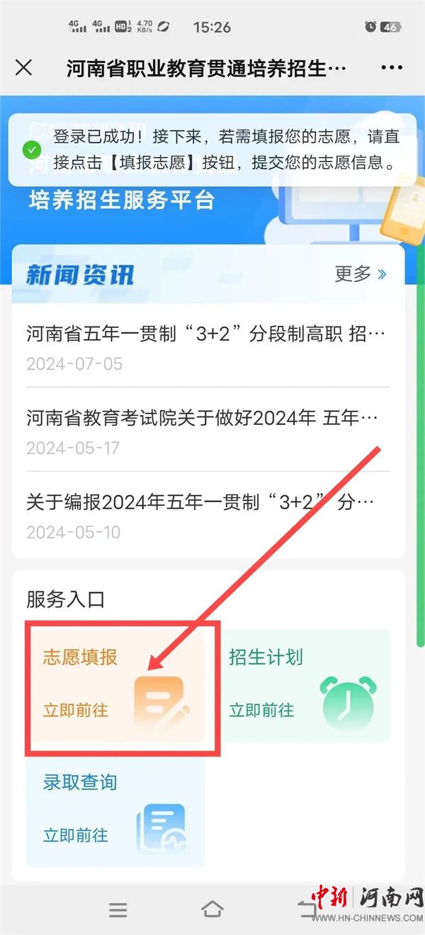 1.考生可通過(guò)“河南省職業(yè)教育貫通培養(yǎng)招生服務(wù)平臺(tái)”(網(wǎng)址:http://zjgt.haeea.cn)(簡(jiǎn)稱(chēng)招生服務(wù)平臺(tái))進(jìn)行網(wǎng)上志愿填報(bào)。