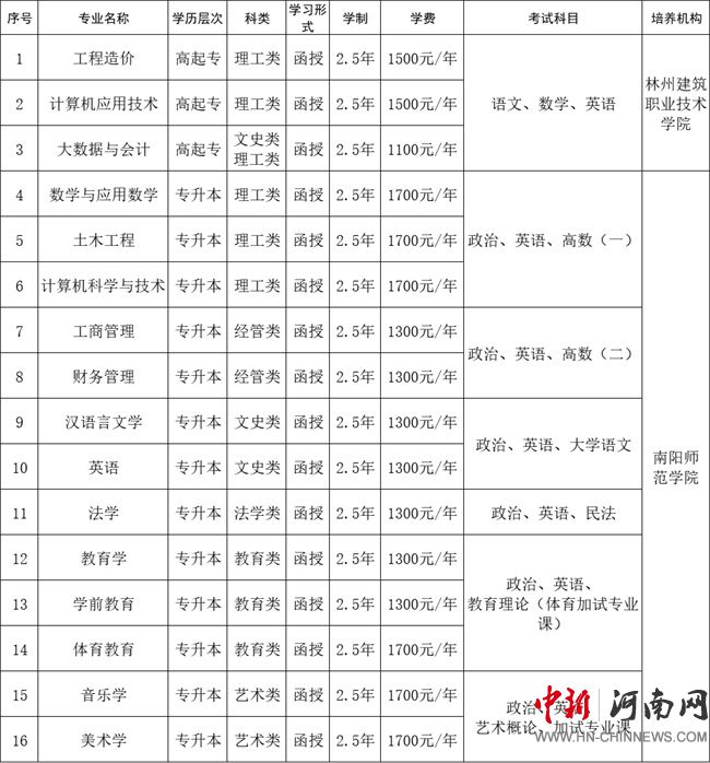 2.錄取:學(xué)院嚴格執(zhí)行招生錄取政策規(guī)定,堅持公開、公平、公正原則,按照考生成人高考成績由高到低擇優(yōu)錄取,考生可于12月中旬登錄“河南省教育考試院”網(wǎng)站查詢錄取結(jié)果,學(xué)校統(tǒng)一印制、發(fā)放錄取通知書。