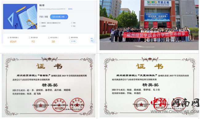 改革“組合拳”落地,育人質(zhì)量提升。團隊打造的《審計學》在線開放課程在超星學習通平臺受歡迎,累計選課超900人次,瀏覽量破64萬次。應(yīng)用創(chuàng)新教學方法后,課堂互動率提升40%,學生自主學習能力增強,團隊凝練的二元三階五步混合式教學法被省內(nèi)2所高校借鑒推廣。審計學專業(yè)學生在權(quán)威學科競賽中屢創(chuàng)佳績,2025年獲2項國家級獎項。通過“現(xiàn)場教學”“企業(yè)導(dǎo)師進課堂”等活動,300余名學生實現(xiàn)理論與實踐的無縫銜接。