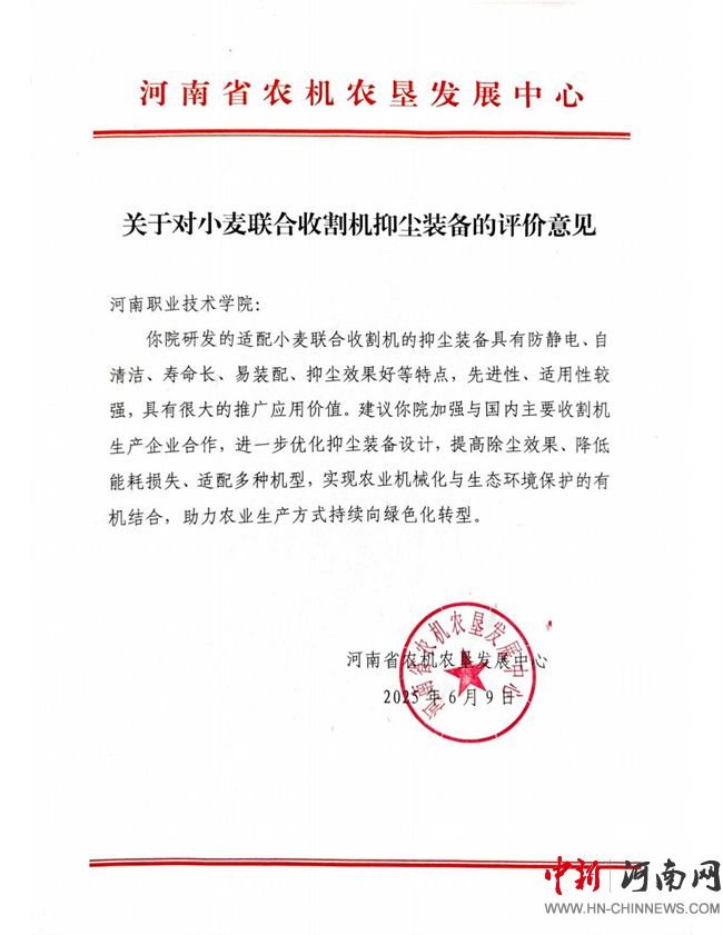 河南省農(nóng)機(jī)農(nóng)墾發(fā)展中心出具相關(guān)評(píng)價(jià):